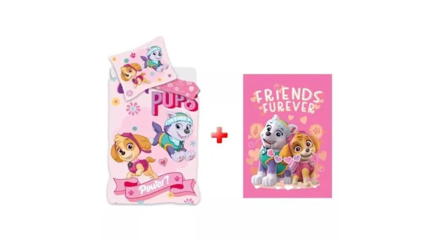 Ágyneműhuzat és polár takaró szett Mancs Őrjárat mintával lányoknak