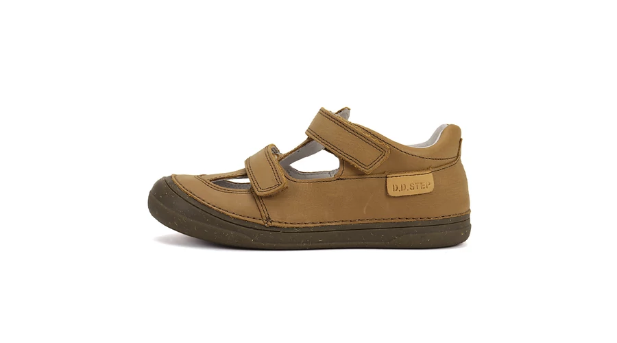Ez a D.D.Step tavaszi fiú cipő tökéletes választás a melegebb hónapokra. A természetes színvilágú, világosbarna bőrcipő valódi bőrből készült, így puha, jól szellőző és rendkívül tartós. A két tépőzáras pántnak köszönhetően egyszerű a fel- és levétele, emellett stabil tartást is biztosít a gyermek lábának. A kialakítása nyitottabb, így kellemes viselet tavasszal és a kora nyári napokon is, ideális például óvodába vagy udvari játékhoz. A gumírozott orr védi a cipőt a kopástól, a hajlékony, csúszásmentes talp pedig biztonságos járást nyújt minden kalandhoz.A belső talphossz a méret kiválasztása után látható!