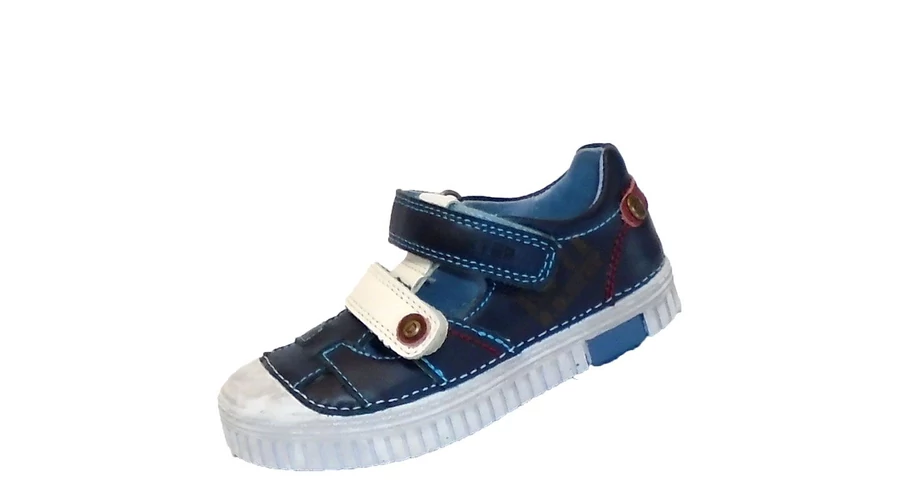 D.D.step, kék-fehér színű, fiú gyerek tavaszi bőrcipő. Talpa természetes gumi, mely könnyű, hajlékony, rugalmas és csúszásmentes járást biztosít. A lábbal érintkező részeken puha, valódi bőr bélést használnak.