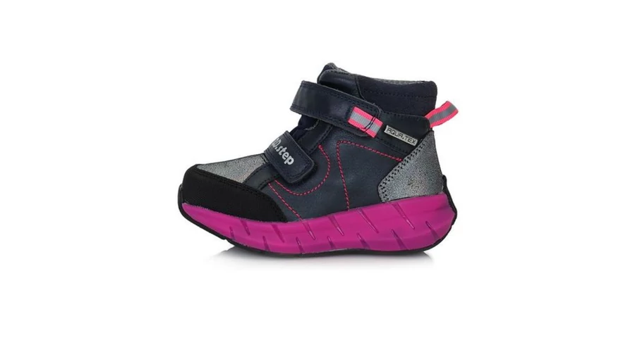 D.D Step, vízálló, sötétkék-rózsaszín, extra könnyű, téli bakancs lányoknak. Bőr talpbetéttel, textil béléssel. Orr része gumival védett. Kiszállítás 1-2 munkanap. A méret kiválasztása után látható a cipő belső talphossza.