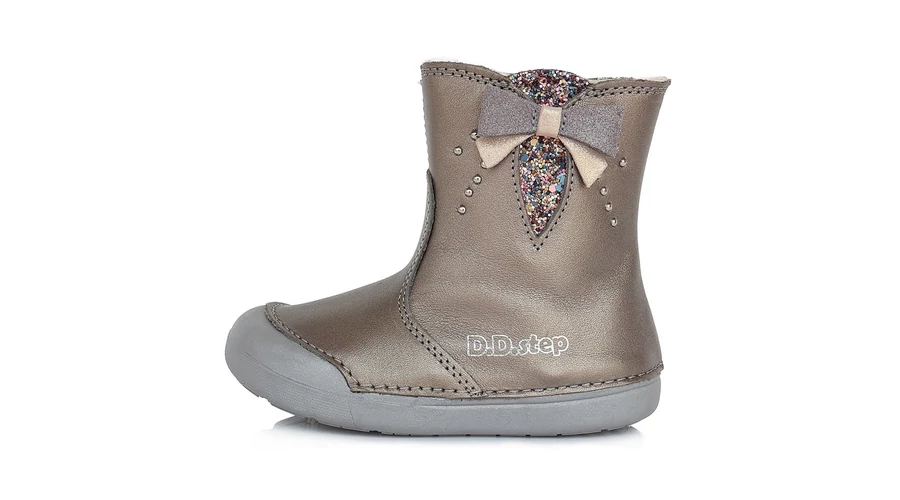 D.D.step, bronz színű, masnival díszített, téli, bélelt, gyerekcsizma lányoknak.