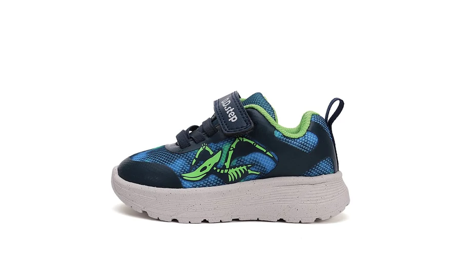 Ez a D.D. Step fiú sportcipő tökéletes választás a mozgékony gyerekek számára, akik imádják a különleges, vagány mintákat. A kék és zöld színek dinamikus kombinációja, valamint a dinoszaurusz csontváz grafika igazán egyedi megjelenést biztosít. A cipő kialakítása nemcsak divatos, hanem kényelmes is, hiszen a légáteresztő textil felsőrész biztosítja a megfelelő szellőzést, míg a megerősített orr-rész extra védelmet nyújt a lábnak. A tépőzár és gumis fűző kombinációja megkönnyíti a fel- és levételt, valamint biztos tartást ad a lábnak.