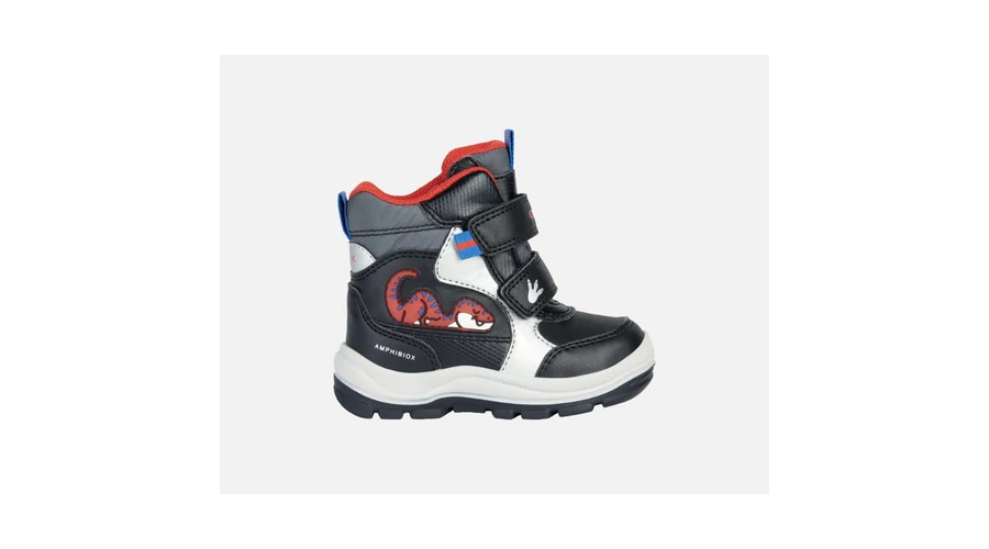 Geox, fekete-ezüst, dinó mintás, villogó, vízálló hótaposó fiúknak.
