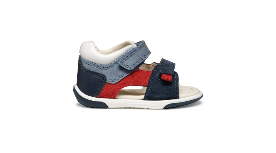 Ez a Geox fiú bőrszandál tökéletes választás a nyári napokra, hiszen mindent biztosít a kényelmet, a tartósságot és a megfelelő lábtartást. A sötétkék, piros és fehér színkombináció sportos, mégis elegáns megjelenést kölcsönöz a szandálnak, így könnyen kombinálható bármilyen ruházattal. A prémium minőségű valódi bőr felsőrész biztosítja a megfelelő szellőzést, így a gyermek lába egész nap friss marad. A Geox szabadalmaztatott lélegző talpa elvezeti a nedvességet, csökkentve a láb izzadását és biztosítva a maximális komfortot. A belső talphossz a méret kiválasztása után lesz látható!