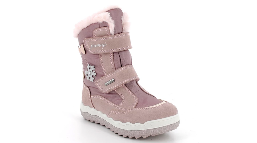 Ez a Primigi vízálló lány bakancs tökéletes választás a hideg, nedves téli napokra, hiszen egyszerre nyújt stílusos megjelenést és maximális kényelmet. A finom rózsaszín árnyalatot játékos, téli motívumok – például ezüst hópehely és apró masni – díszítik, amelyek vidám, mégis elegáns külsőt kölcsönöznek a cipőnek. A puha, meleg bélés gondoskodik a lábak folyamatos komfortjáról, míg a GORE-TEX membrán megbízható védelmet biztosít az eső, a hó és a hideg ellen, így a kicsik lába mindig száraz marad. A praktikus tépőzáras kialakítás lehetővé teszi a gyors és egyszerű felvételt, a csúszásgátló, bordázott talp pedig biztonságos járást garantál még a jegesebb, havas felületeken is. Ez a bakancs ideális társ minden téli kalandhoz, a játszótértől a városi sétákig.