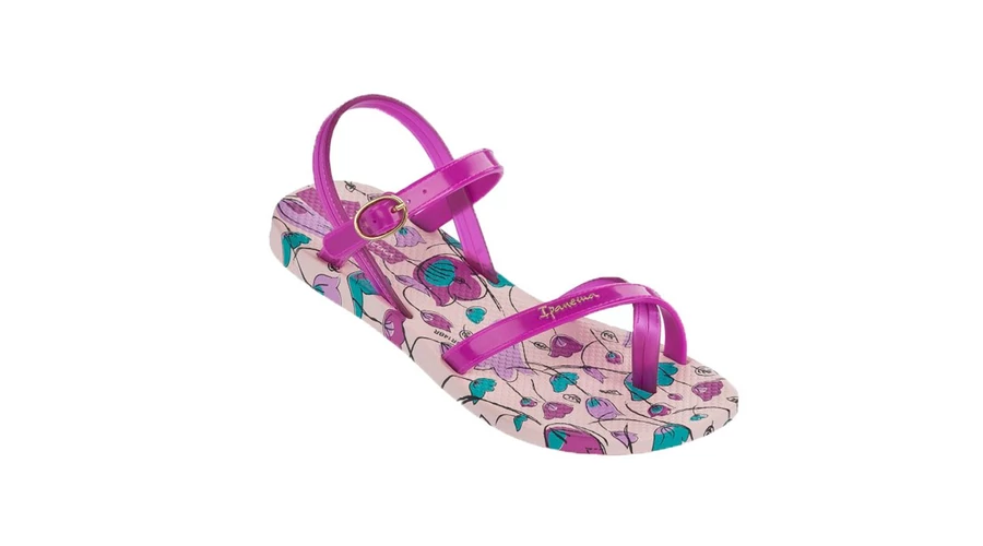 Ipanema, pink-lila, virágos talpú, csatos, lábujjas, rugalmas talpú, lány gyerek szandál. Talpa, természetes gumi, mely könnyű, rugalmas és csúszásmentes járást biztosít. Az Ipanema szandálok és papucsok utcai és vízparti viseletre egyaránt tökéletesen alkalmasak. A láb méreténél egy mérettel nagyobb terméket ajánlott választani.