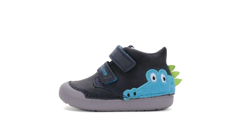 Válassz kisfiadnak valódi bőrből készült, kényelmes D.D. Step átmeneti cipőt. A hajlékony, csúszásmentes talp támogatja a természetes járásmintát, így biztonságos választás első lépésektől kezdve egészen a magabiztos szaladgálásig. A dupla tépőzáras záródás megkönnyíti a felvételt, és stabilan tartja a lábat mozgás közben is. Cuki krokodil mintával van díszítve ami biztosan elvarázsolja kisfiad. A méret kiválasztása után látható a cipő belső talphossza!