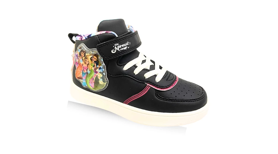 A Mermaid Magic fekete lánycipő tökéletes választás azoknak a kislányoknak, akik szeretik a mesés és vidám megjelenést. A cipőt különlegessé teszi az oldalán található színes sellő minta, amely játékos, varázslatos hangulatot kölcsönöz minden lépésnek. A kényelmes kialakításról a puha belső rész és a könnyen használható tépőzár gondoskodik, így a mindennapi fel- és levétel gyerekjáték. A sportos szabás és a rugalmas talp biztosítja, hogy a cipő egyszerre legyen praktikus és stílusos, akár iskolába, akár szabadidős programokra viseli a gyerek. Ez a modell igazi kedvenc lehet minden kis hercegnő számára, aki szeretné, hogy cipője épp olyan különleges legyen, mint ő maga.