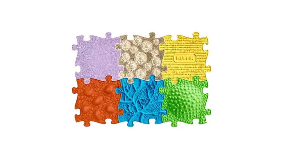 A Muffik szenzomotoros ortopédiai szőnyeg egy innovatív és szórakoztató módszer a gyermekek láberősítésére, bokasüllyedés kezelésére, lúdtalp korrigálására, vagy bármilyen ortopédiai problémák kezelésére. A szőnyeg különböző formájú, felületei, mint például kavicsok, kagylók és kövek, segítenek a gyermekeknek fejleszteni az egyensúlyérzéküket és erősíteni lábuk izmait. A puzzle darabokból álló szőnyeg könnyen bővíthető, így fokozatosan növelhető a nehézségi szint, az elemek könnyen illeszkednek egymáshoz, így gyermekeitek számára a legideálisabb pályát tudjátok összerakni. A készlet 6 darabból ál: