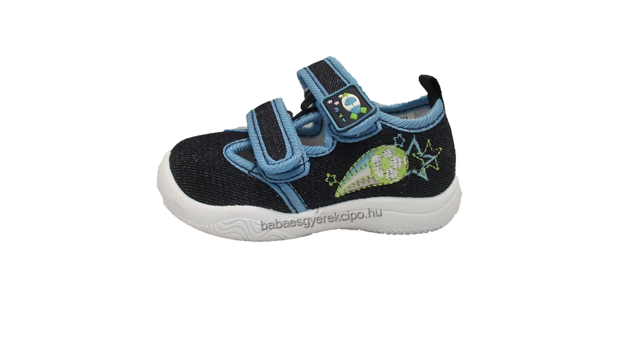 Két tépőzárral állítható, sötétkék, valódi bőr talpbetétes fiú vászoncipő. Kiváló utcai viselet a tavaszi napokra, de akár benti csere cipőnek is tökéletes.