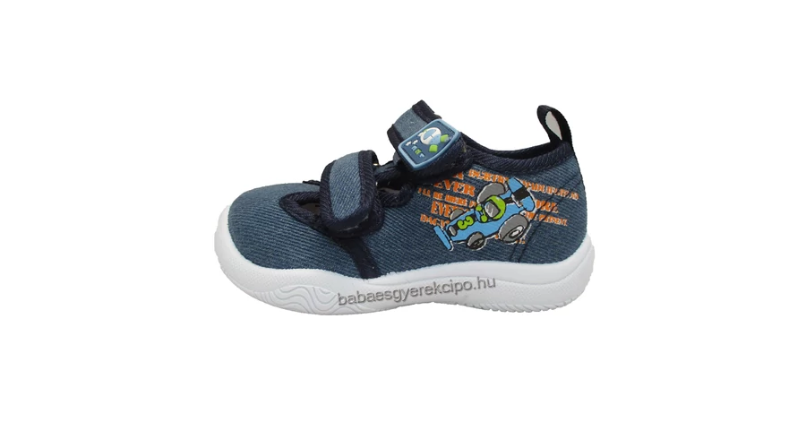 Két tépőzárral állítható, világos farmerkék, valódi bőr talpbetétes fiú vászoncipő. Kiváló utcai viselet a tavaszi napokra, de akár benti csere cipőnek is tökéletes.
