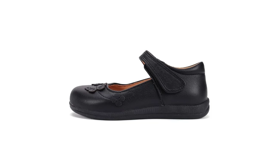 Ez a D.D. Step bőr alkalmi cipő elegáns és visszafogott stílusával tökéletes választás ünnepi alkalmakra, iskolai, óvodai eseményekre vagy ballagásra. A klasszikus fekete szín finom pillangó- és virágdíszítéssel egészül ki, amely különlegessé teszi. A minőségi bőrből készült külső-belső rész természetes módon illeszkedik a lábhoz, a puha bélés pedig kényelmes viseletet biztosít. A tépőzáras pánt egyszerű és biztonságos záródást nyújt, így a cipő könnyen fel- és levehető. Ideális választás azoknak a kislányoknak, akik kényelmet és stílust szeretnének egyben. A méret kiválasztása után látható a cipő belső talphossza!