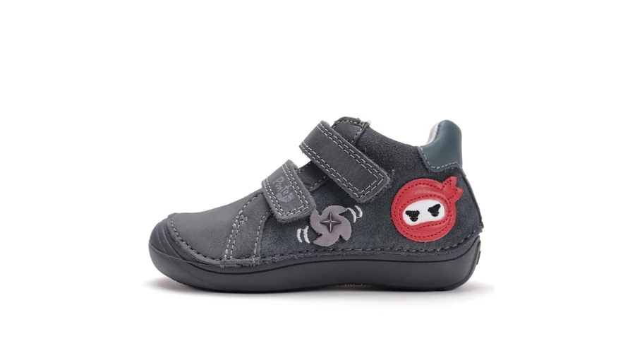 Ez a Ponte20 supinált kisfiú cipő sötétszürke színével és vagány nindzsa mintájával igazi kedvenc lehet a mozgékony, kalandvágyó gyerekek számára. A valódi bőrből készült cipő kiváló tartósságot biztosít, miközben puha és kényelmes viseletet nyújt. A beépített supináció segíti a megfelelő bokatartást és a helyes lábtartás kialakítását. A két tépőzáras pánt egyszerű és gyors felvételt tesz lehetővé, így a cipő jól tart a kisgyermek lábán egész napos használat során is. Ideális választás óvodába, játszótérre vagy sétákhoz. A méret kiválasztása után látható a cipő belső talphossza!