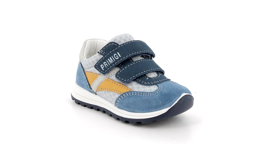 A Primigi fiú sportcipő tökéletes választás a mindennapi aktív mozgáshoz és hétköznapi viseletre is.  A kék, szürke és sárga színkombináció modern, sportos megjelenést biztosít, amely bármilyen szett kiegészítője lehet. A cipő felsőrésze kiváló minőségű bőrből és légáteresztő textilanyagból készült, amely biztosítja a megfelelő szellőzést, így a gyermek lába egész nap friss marad. A könnyű, rugalmas gumitalp csúszásmentes kialakításának köszönhetően biztos tapadást garantál különböző felületeken, így ideális választás játszótéri kalandokhoz és városi sétákhoz is. A puha talpbetét és a saroknál kialakított párnázás extra kényelmet biztosít.  Egészségpénztárra elszámolható!