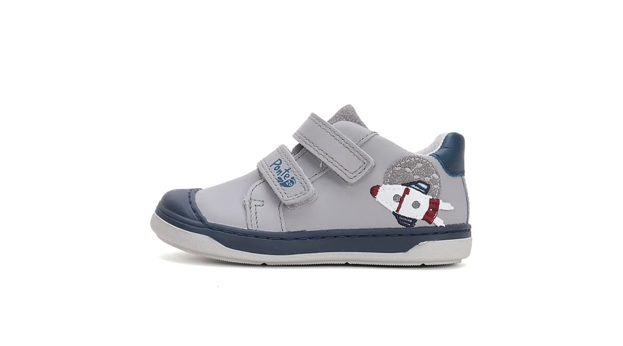 Válassz kisfiadnak minőségi Ponte20 supinált cipőt. Kérge erősített, supinált tehát korrigálja a bokabedőlést, megfelelő tartást biztosít gyermeked lábának, hozzájárul az egészséges lábfejlődéshez. Két tépőzáras így könnyen lábfejre igazítható. Valódi bőrből készült kívül-belül, ezáltal nem fog izzadni benne kisfiad lába. Talpbetéte kivehető így könnyebb lesz tisztán tartanod. Szürke színű, vagány rakéta mintás amiért biztosan odáig lesz kisfiad.