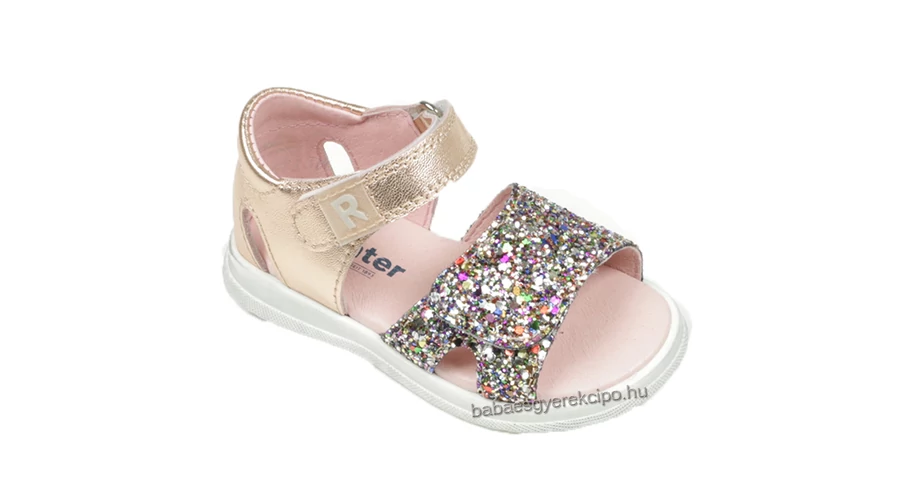 Richter, divatos, arany színű, csillogós flitterekkel díszített, gyerek szandál lányoknak.