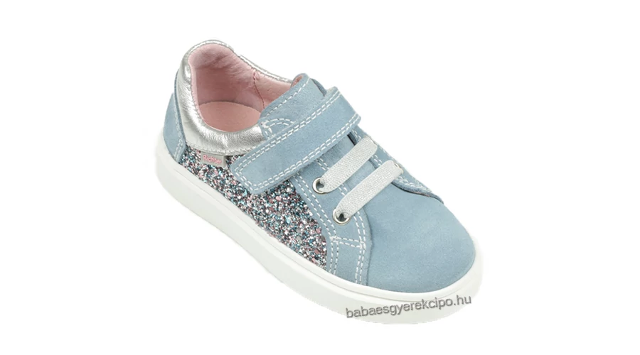 Égszínkék, oldalán csillogós flitterekkel díszített átmeneti gyerekcipő lányoknak. A tépőzárnak köszönhetően könnyen a lábra igazítható. Valódi bőrből készült. Kiszállítás 1-2 munkanap.
