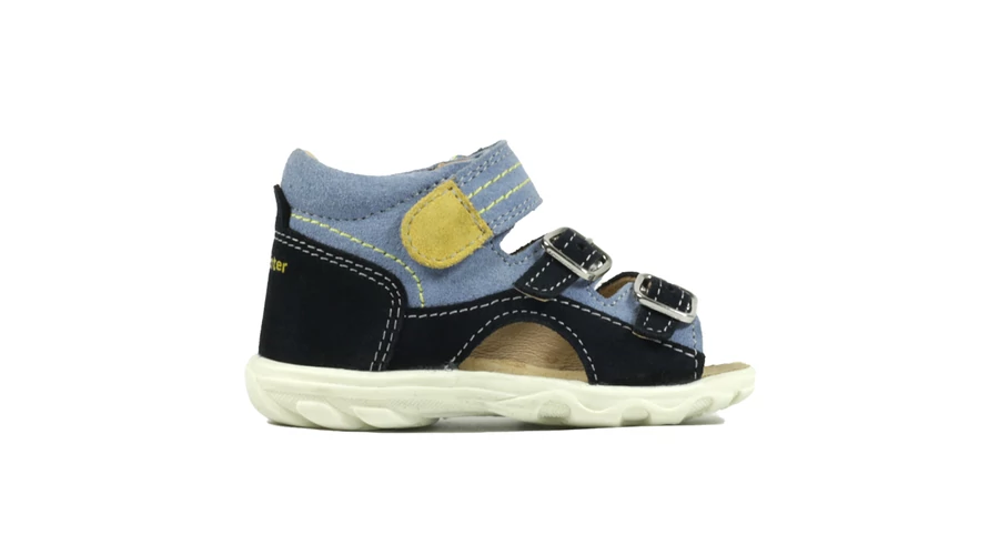 Válaszd ezt a Richter szandált kisfiadnak, a letisztult elegáns dizájnnak köszönhetően akár alkalmakra is jó választás. Nagyon kényelmes viselet hisz puha velúrbőrből készült így biztosan nem fogja dörzsölni vagy nyomni gyermeked lábát. Valódi bőr talpbetétével megóvja a lábakat az izzadástól még a meleg nyári napokon is. A két csat egy tépőzárnak köszönhetően könnyen a lábfejre igazítható, stabil tartást biztosít így tökéletesen alkalmas az első lépésekhez is. A méret kiválasztása után látható a belső talphossz. Kiszállítás 1-2 munkanap.