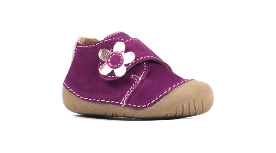 Lila, virágos, extra puha és hajlékony talpú, átmeneti gyerekcipő lányoknak. Orr része gumival védett, könnyen felvehető, tépőzáras fazon. Valódi bőrből készült, strapabíró. Kiszállítás 1-2 munkanap.