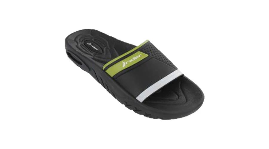 Rider, fekete, fiú gyerek gumipapucs. Talpa, természetes gumi, mely könnyű, rugalmas és csúszásmentes járást biztosít. A Rider papucsok és szandálok, utcai és vízparti viseletre egyaránt tökéletesen alkalmasak. A láb méreténél egy mérettel nagyobb terméket ajánlott választani.