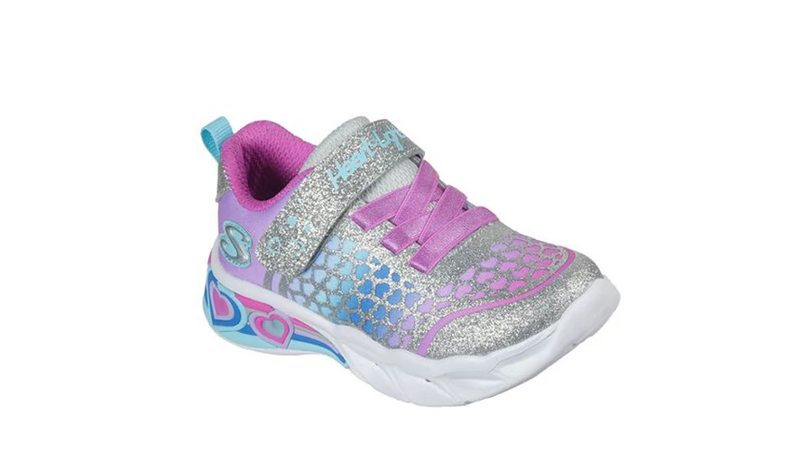 Skechers, ezüst-lila , villogó talpú, sport cipő lányoknak