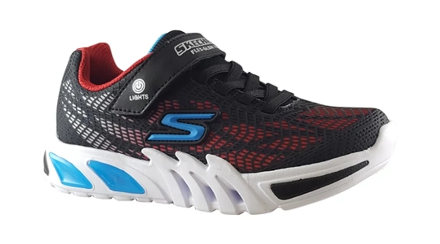 Skechers, piros-fekete színű, villogó talpú, sportcipő fiúknak.