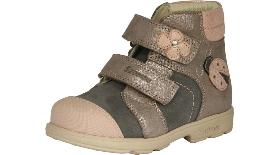 A Szamos supinált kislány cipő a lábtartás egészséges fejlődését szem előtt tartva készült, minőségi valódi bőr felhasználásával. A bézs-barna árnyalatokat játékos katica- és virágminta dobja fel, amely vidámságot csempész a mindennapi viseletbe. A két tépőzáras pánt gyors és egyszerű fel- és levételt biztosít, míg a supinált kialakítás segíti a boka megfelelő tartását, megelőzve a bedőlést. Ideális választás óvodába, bölcsődébe vagy sétákhoz. A belső talphossz a méret kiválasztása után látható!