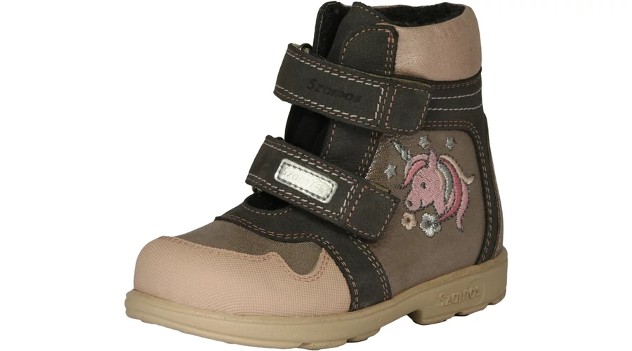 Ez a Szamos supinált, vízálló téli cipő a minőség és a kényelem tökéletes kombinációja. Valódi bőrből készült, belül meleg thermo béléssel, így ideális választás a hideg téli napokra. A supinált kialakítás segíti a gyermek lábának egészséges fejlődését, míg a tépőzáras megoldás egyszerű fel- és levételt biztosít. A megerősített orr-rész és a stabil, csúszásmentes talp biztonságos járást garantál. A rózsaszín unikornisos hímzés vidám és kedves részlet, amit a kislányok azonnal megszeretnek. Egészségpénztárra elszámolható! A belső talphossz a méret kiválasztása után látható!