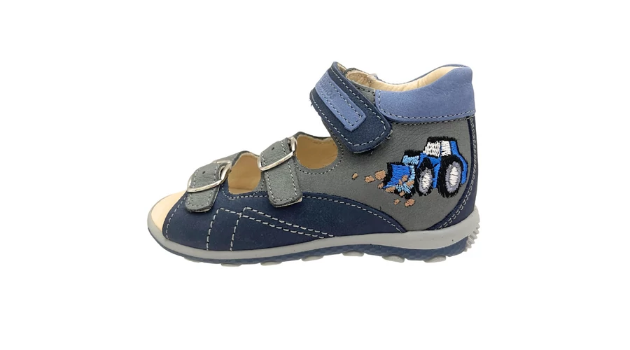 Ez a Szamos kisfiú szandál kiváló választás a nyári hónapokra, hiszen könnyű, jól szellőző és rendkívül kényelmes viselet a kisgyermekek számára.A szandál egy tépőzáras és két csatos pánttal rendelkezik, amelyek lehetővé teszik a tökéletes illeszkedést. Az oldalán található traktoros hímzés különleges és játékos részlet, amely feldobja ezt a praktikus modellt. A belső talphossz a méret kiválasztása után látható.