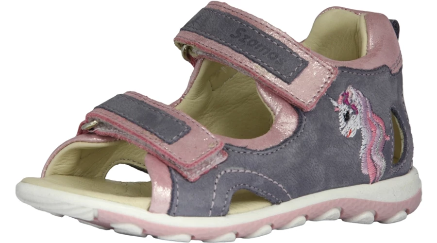 Szamos, lila színű,hímzett unikornis mintával díszített gyerekszandál lányoknak.