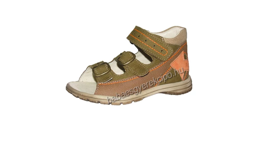 Szamos,Military zöld-barna színű, két csat, egy tépőzáras, fiú gyerek bőrszandál.