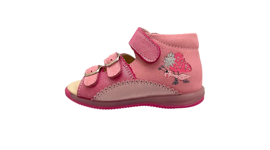 Ez a gyönyörű Szamos kislány szandál tökéletes választás a kis hercegnők számára, akik szeretik az egyedi és kényelmes lábbeliket. A kiváló minőségű bőr felsőrész biztosítja a láb természetes szellőzését, és a puha anyag óvja a gyermek érzékeny bőrét. A szandál három állítható pánttal – egy tépőzáras felsőrésszel és két csatos pánttal – rendelkezik, amely lehetővé teszi a megfelelő illeszkedést és a könnyű fel- és levételt. A belső talphossz a méret kiválasztása után látható.
