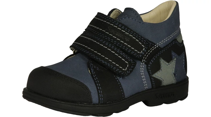 Ez a Szamos supinált fiú cipő sportos kék-fekete színvilággal és dekoratív csillag mintával készült, amely lendületes, játékos megjelenést kölcsönöz a lábbelinek. A valódi bőr felsőrész kiváló tartósságot biztosít, a supinált kialakítás pedig hozzájárul a boka és a lábboltozat egészséges fejlődéséhez. A dupla tépőzár gyors és kényelmes felvételt tesz lehetővé, így ideális választás aktív, mozgékony kisfiúk számára, mindennapi viselésre. A belső talphossz a méret kiválasztása után látható!