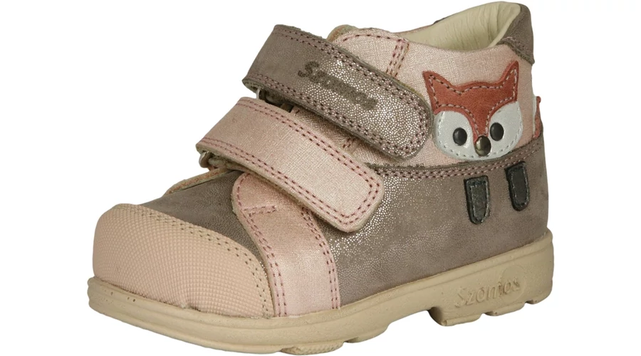 Ez a Szamos supinált lány cipő bézs és rózsaszín színkombinációban, csillogó részletekkel és oldalán elhelyezett vidám rókás mintával készült. A supinált kialakítás segíti a helyes lábtartás kialakulását, hozzájárul a lúdtalp megelőzéséhez, és támogatja a láb egészséges fejlődését. A két tépőzáras pánt megkönnyíti a fel- és levételt, miközben biztonságosan tartja a lábat. Prémium minőségű bőr felsőrésze és rugalmas, csúszásmentes talpa kényelmet és tartósságot biztosít, így ideális választás mindennapi használatra, óvodába vagy sétákhoz. A belső talphossz a méret kiválasztása után látható!