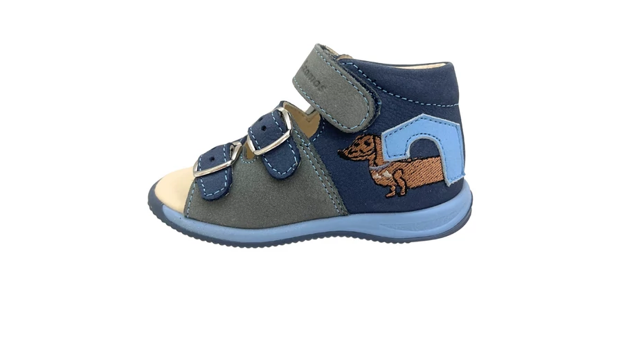 Ez a Szamos kisfiú szandál tökéletes választás a nyári hónapokra, hiszen könnyű, jól szellőző és rendkívül kényelmes viselet a mindennapokra. A szandál egy tépőzáras és két csatos pánttal rendelkezik, amelyek megkönnyítik a fel- és levételt, valamint lehetővé teszik a tökéletes illeszkedést. A prémium minőségű bőr felsőrész biztosítja a láb természetes szellőzését. A belső talphossz a méret kiválasztása után látható.