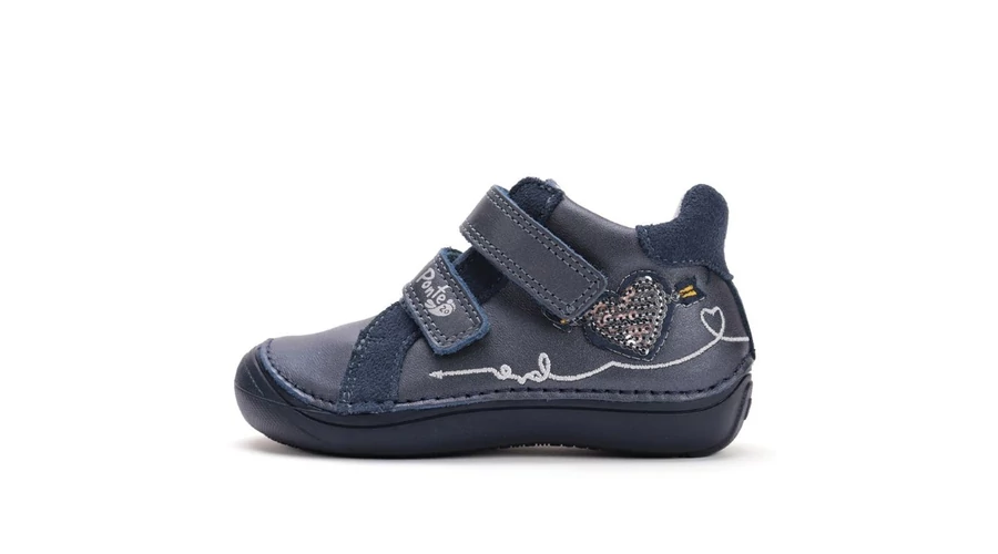 Válassz kislányodnak sötétkék színű, szívecske mintával díszített Ponte20 supinált cipőt. Valódi bőrből készült, így biztosítja a tartósságot és a megfelelő szellőzést. A supinált talpkialakítás támogatja a bokák és a lábfej helyes fejlődését, ezért ajánlott befelé dőlő boka vagy lúdtalp esetén is. A két tépőzáras pántnak köszönhetően a cipő gyorsan és könnyen felvehető. Ez a modell kiváló választás az átmeneti időszakra, amikor fontos a megbízható tartás és a gyermekláb megfelelő alátámasztása. A méret kiválasztása után látható a cipő belső talphossza!