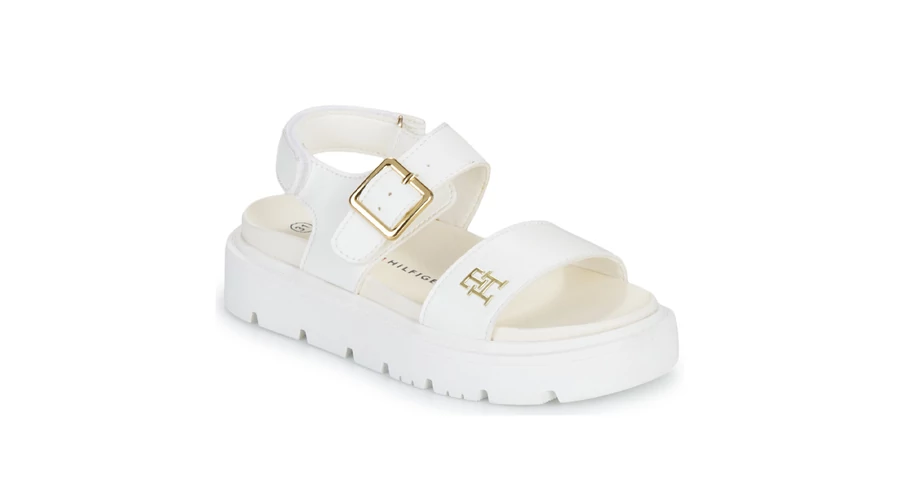 Ez a Tommy Hilfiger szandál stílusos és kényelmes választás a nyári hónapokra. A letisztult fehér szín és az arany részletek elegáns megjelenést kölcsönöznek, így könnyedén kombinálható hétköznapi vagy alkalmi szettekkel. Tartós és könnyen tisztítható, míg a vastag talpkialakítás stabilitást és extra kényelmet biztosít. A széles pántok megfelelő tartást adnak a lábnak, a csatos rögzítés pedig állítható, így mindenki a saját igényeihez igazíthatja a tökéletes illeszkedés érdekében.