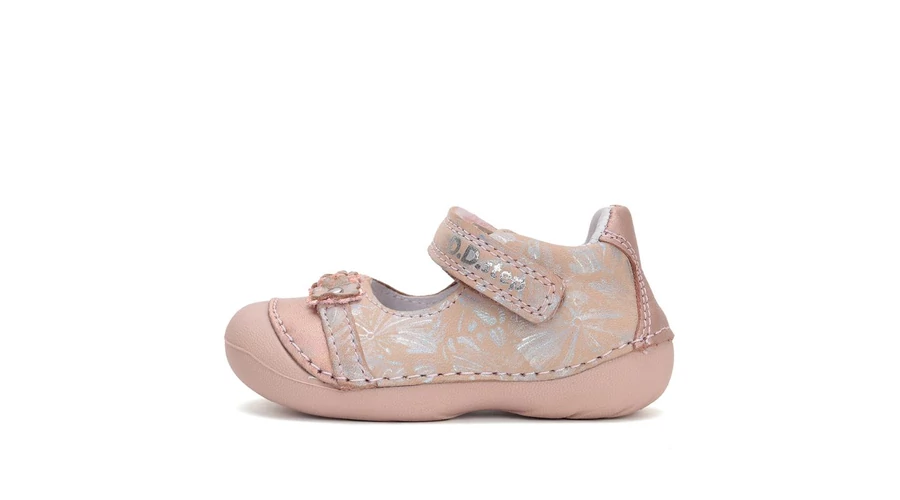 Ez a D.D. Step bőr kislány cipő tökéletes választás az első lépésekhez és a mindennapi felfedezésekhez, hiszen rendkívül könnyű, hajlékony és kényelmes. A hajlékony, csúszásmentes gumitalp támogatja a természetes mozgást és segíti a stabil járást, miközben a megerősített orr-rész extra védelmet nyújt a kis lábujjak számára. A cipő széles orrkialakítása elegendő helyet biztosít a lábujjak szabad mozgásához, így hozzájárul a láb egészséges fejlődéséhez.