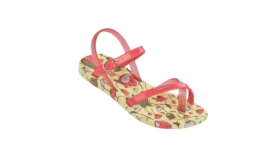 Ipanema, sárga-korall színű, virágos talpú, csatos, lábujjas, rugalmas talpú, lány gyerek szandál. Talpa, természetes gumi, mely könnyű, rugalmas és csúszásmentes járást biztosít. Az Ipanema szandálok és papucsok utcai és vízparti viseletre egyaránt tökéletesen alkalmasak. A láb méreténél egy mérettel nagyobb terméket ajánlott választani.