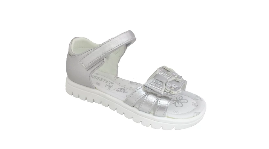 Weestep, ezüst színű, masnival és virágokkal díszített gyerek szandál lányoknak.