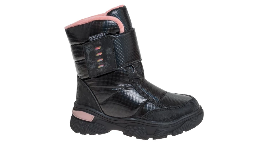 Vízálló, gyerekhótaposó lányoknak. Kívül valódi bőr és textil borítású, belül természetes gyapjúval bélelt. A tépőzárnak köszönhetően könnyen a lábfejre igazítható.